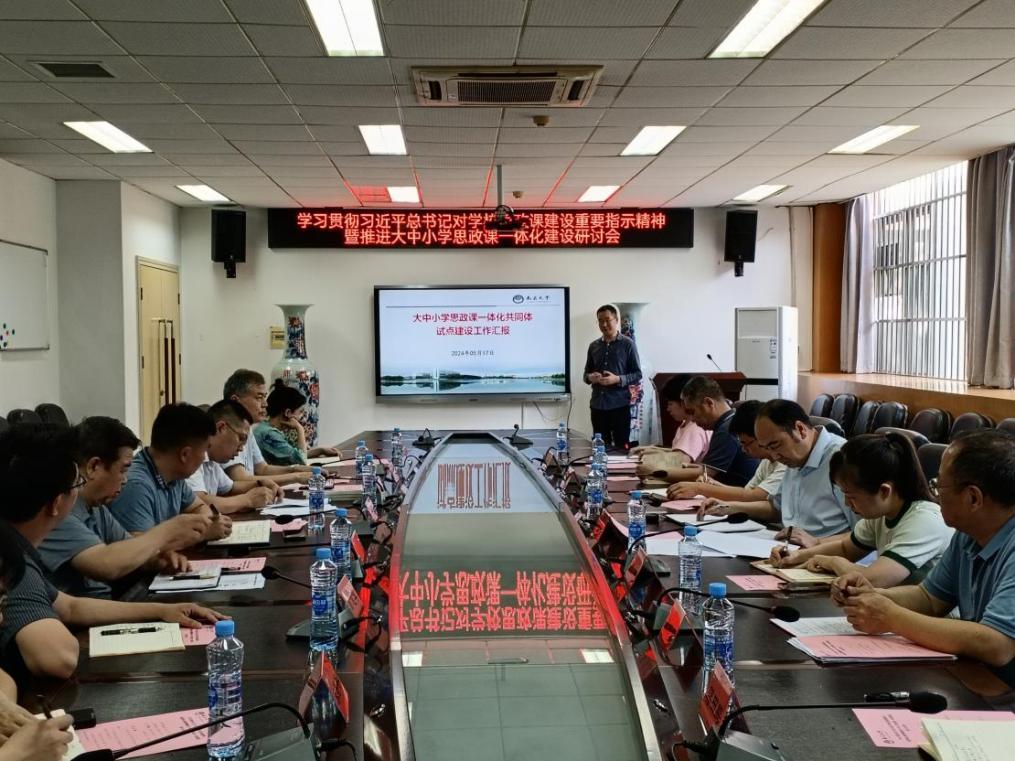 会上,与会人员集体学习了习近平总书记对学校思政课建设重要指示精神。马克思主义学院相关负责人汇报了大中小学思政课一体化共同体试点建设工作进展、目标和举措。大家围绕“学习贯彻习近平总书记对学校思政课建设的重要指示精神,持续提升思政课教学质量,深入推进大中小学思政课一体化建设”积极发言、热烈讨论,深入学习了大中小学思政课一体化建设的逻辑和宗旨,分享了各校大中小学思政课一体化建设经验,提出了将学校特色与思政相结合、专题与艺术相结合、“双五环结构式”教学等建议,并就大中小思政课一体化存在的问题、如何推进大中小思政课一体化建设等进行了深入交流。