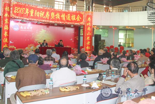 本网讯(记者涂金凤)10月17日上午,正值重阳节,一场尊老、爱老、敬老的庆祝活动在青山湖校区北区逸夫馆温馨举行。校党委书记喻晓社、校长周创兵代表学校为58位80岁老同志举行重阳祝寿活动。