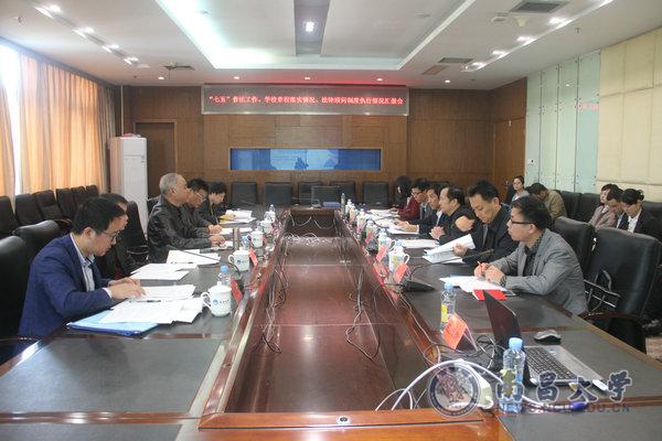 会上,我校与江西财经大学、江西农业大学分别围绕“七五”普法工作、学校章程落实情况、法律顾问制度执行情况等方面进行了汇报。