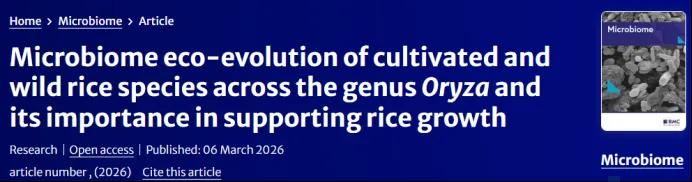 水稻是全球超过一半人口的主粮,稻属包含野生稻与栽培稻,历经约 1500 万年演化,形成多样的基因组型与染色体倍性。栽培稻在驯化过程中遗传多样性显著降低,许多优良性状被丢失;而野生稻作为重要遗传资源,其共生微生物组的生态进化规律尚未明确。目前仍不清楚宿主演化、多倍化与驯化如何塑造水稻微生物组。