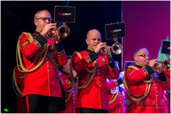 新西兰国家军乐团在音乐会演奏了《感谢三月》《城堡》《亚马逊》等曲目。紧随其后上台的澳大利亚皇家海军军乐团演绎风格多变,乐曲曲调激昂又不失柔和。最后出场的南昌大学管乐团深情演绎了《在那遥远的地方》等经典曲目。