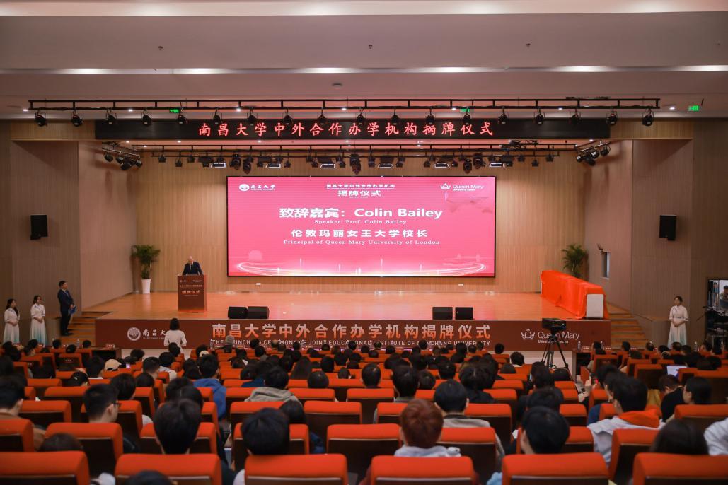 Colin Bailey在致辞中诚挚感谢各级领导、专家学者及各界朋友对南昌大学与伦敦玛丽女王大学合作所给予的关心与支持,简要介绍了伦敦玛丽女王大学的办学历史与学术突破,回顾了两校深厚的合作渊源与丰硕的合作成效。他表示,中外合作办学机构的揭牌,象征着两校建立在相互尊重、共同学术追求以及通过教育和研究改变生活的共同愿景之上的伙伴关系正在深化。两校将共同致力于培养下一代科学家、医生和医疗创新人才,为全球健康事业发展注入新动力,希望玛丽女王学院在未来结出更多科研硕果、谱写更多合作佳话。