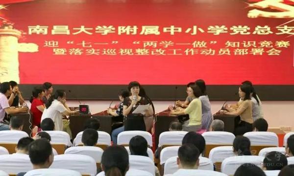 6月29日下午,附属中小学党总支在附属中学202多媒体教室举行迎“七一”“两学一做”知识竞赛暨落实省委巡视整改工作动员部署会。附属中小学党总支全体党员出席活动。