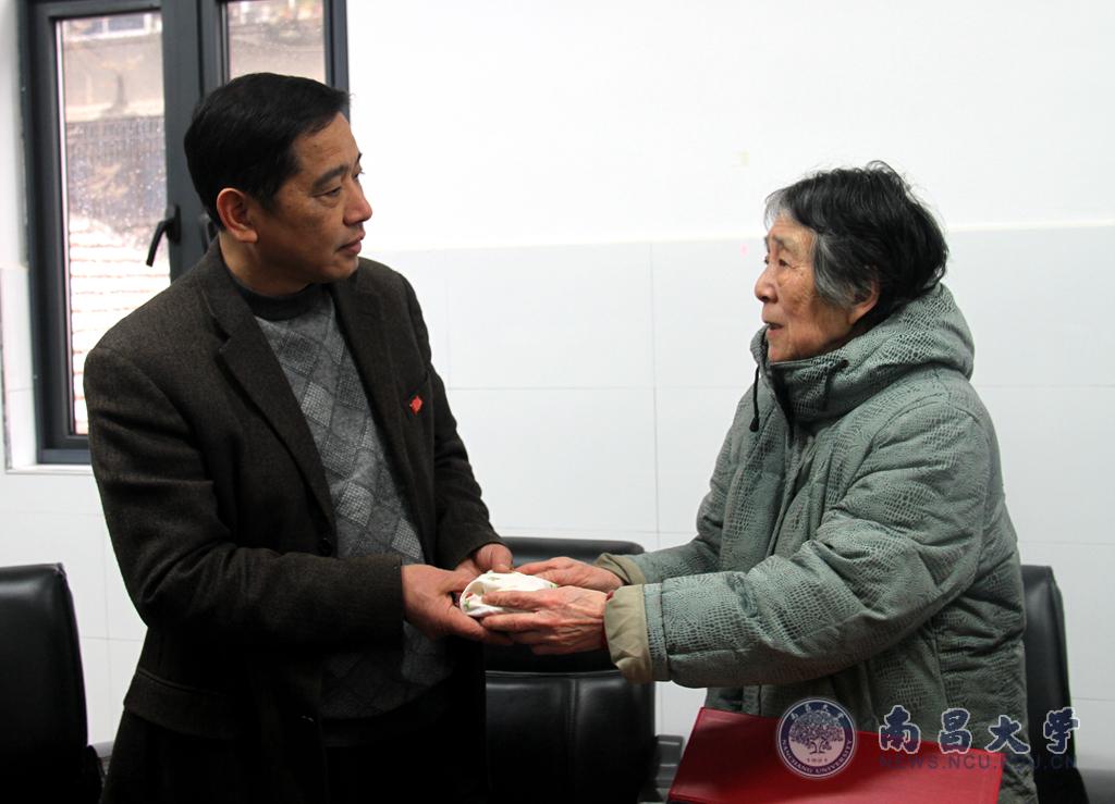 本网讯(南轩)10年军医生涯、31年举家支援江西,73年党龄,近日,南昌大学江西医学院离休教师范迪兴同志因病去世,在遗愿中嘱托家人向党组织交一笔1万元的特殊党费。1月26日下午,他的夫人、我校退休职工刘延芳遵照范老先生最后的嘱托,将用手帕包裹的1万元特殊党费交给学校,校党委常委、组织部部长舒明代表学校党委接受这笔特殊党费,并为范迪兴同志家属颁发大额党费收据。