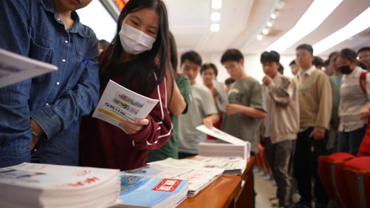 南昌大学学生翻阅新华社重点社办报刊