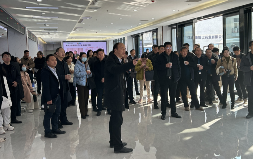 宜春市委组织部部务委员,宜春市人大常委会选任联工作委员会主任杨文先一行到研究院调研,陈明华向调研组介绍了研究院成立以来工作情况,随后参观了研究院创新研究中心。