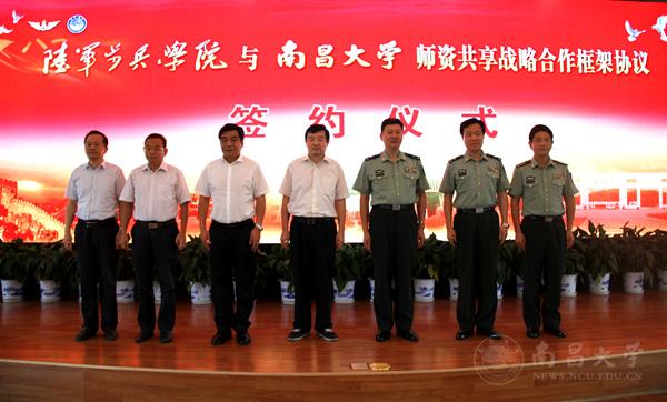 徐金华、周创兵分别代表陆军步兵学院与南昌大学在协议文本上签字。根据协议,双方将通过师资队伍共享为牵引,在实践教学、专业建设、科研学术、国防教育等多领域合作,充分发挥军队和地方高校服务功能,整合优势教育资源,着力提高人才培养质量,强化科技创新,为两校共同发展做出更大贡献。我校近期已选派23名教师到陆军步兵学院担任大学语文、英语、数学、计算机等课程教员。