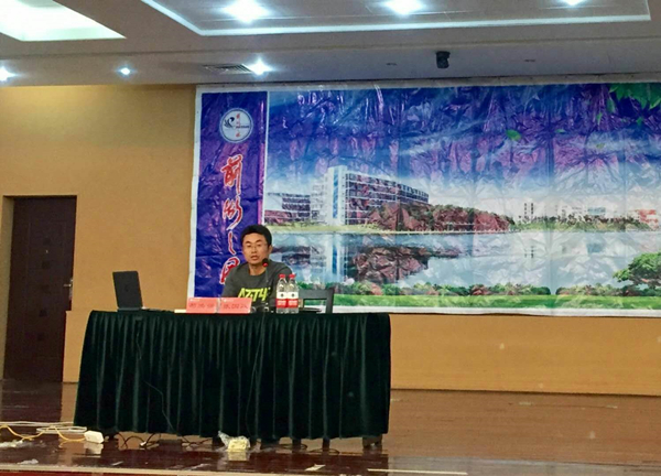 张国政向师生介绍了自己与马拉松结缘的故事。起初,跑步只是为了锻炼身体,但是在每天的奔跑中,张国政逐渐体会到了跑步的乐趣,体会到了奋力奔跑、挥洒汗水、完成目标带来的成就感。