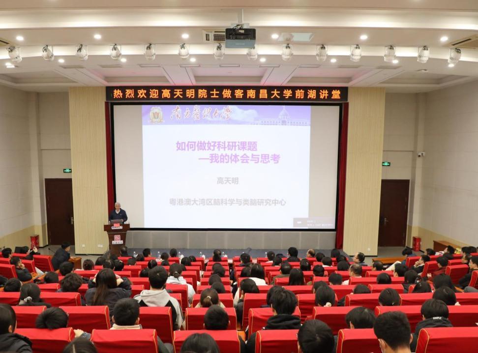 本网讯(江西医学院叶建飞)12月22日,中国工程院院士、南方医科大学基础医学院教授高天明应邀做客“前湖讲堂”第四十二期,以《如何做好基础医学研究——我的体会与思考》为题作学术报告。副校长潘秉兴主持报告会。