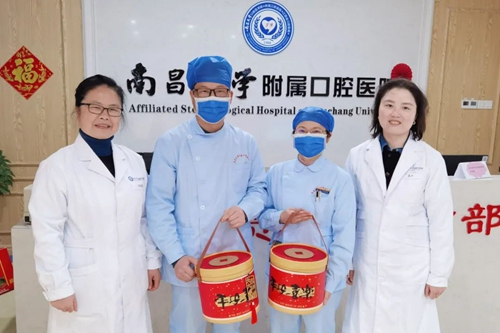 本网讯(附属口腔医院)龙年正月初九,南昌大学附属口腔医院各院区、门诊部全面开诊。医院领导班子带领各职能部门人员分组向临床一线职工们拜年。医院为职工精心准备了具有吉祥寓意的传统点心“如意糕”,祝福大家龙年吉祥如意、万事称心如意。大家互相传递新春祝福,喜气暖意在全院洋溢。