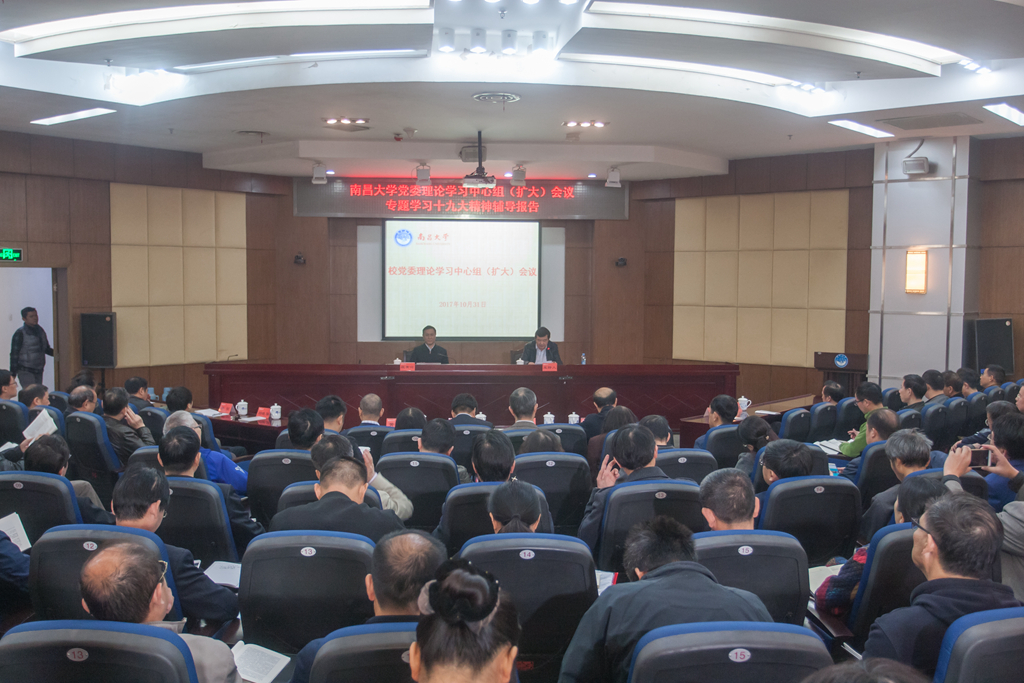 本网讯(记者刘磊,学生记者于慧蓉)10月31日上午,我校在办公楼一楼报告厅召开校党委理论学习中心组(扩大)会议专题学习党的十九大精神,特邀江西省政协常委、江西省政协文史和学习委员会副主任、江西师范大学祝黄河教授作专题学习辅导报告。校党委书记胡永新主持学习。