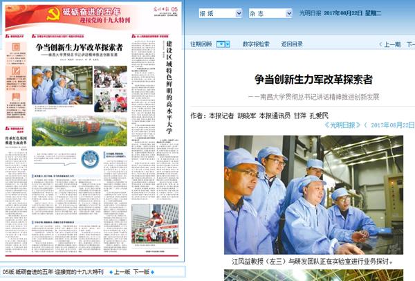 编者按:8月22日,《光明日报》在《砥砺奋进的五年·迎接党的十九大特刊》中,以整版的篇幅专版报道了我校在推进创新发展中取得的成果。