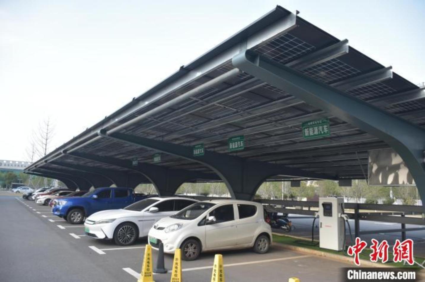 近日,走进位于江西省九江市共青城市的南昌大学共青城光氢储技术研究院(以下简称光氢储技术研究院),新能源汽车、电动车正整齐地停在一座充电站下充电。