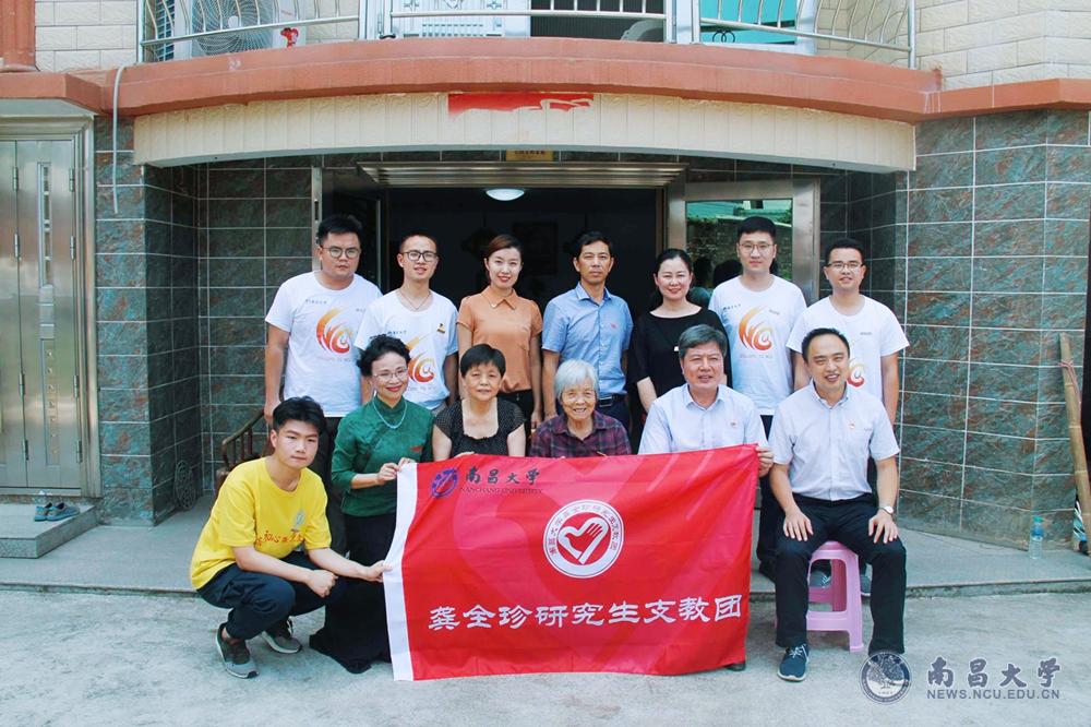 随后,南昌大学研究生支教团的同学们给龚阿姨送上了他们精心准备的《中国梦 支教情》的册子。听了学生们的介绍,老阿姨欣然为研支团授旗“南昌大学龚全珍研究生支教团”。她握着研支团孩子们的手,深情地说:“我看到你们,很亲切,你们要把我们国家最优秀的文化、最优秀的传统继承下来,真正的马克思主义,是我们干出来、在实践中体验出来的,希望你们不要怕吃苦,到春耕的时候,也要向农民一样,不怕流汗,有机械化的地方,用拖拉机,没有机械化的地方,用大锄头,照样能结出丰硕的果实。劳动果实,就是提高我们思想认识的最好的方法......”。