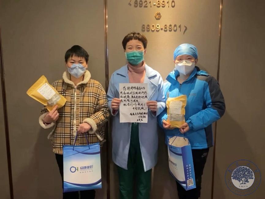 尽管队员们一再向艾冬云表示物资充足、不用记挂,艾冬云左思右想,还是为队员们准备了预防新冠肺炎的中药茶包以表心意。2月29日,她拜托前往武昌方舱医院送物资的朋友带去放在酒店大堂,无接触的爱心传递让队员们十分感动。