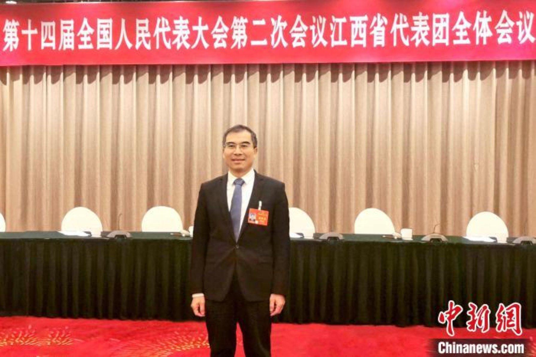 图为全国人大代表、南昌大学校长陈晔光正在参加全国两会。受访者供图