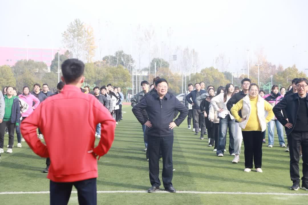 现场,罗嗣海宣布趣味运动会开幕,并饶有兴趣地加入热身队伍中。