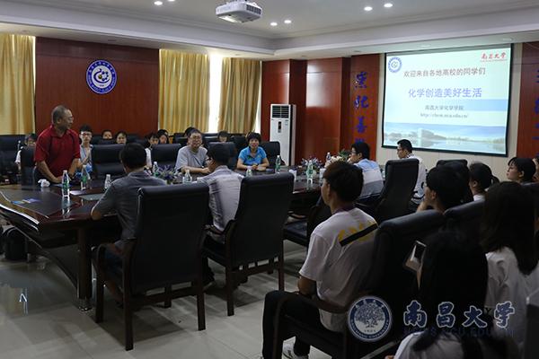 副院长蔡琥主持全国优秀大学生暑期夏令营活动暨南昌大学夏季学期学术报告讲座,王翔教授、谌烈教授、吴涛教授、王勇副教授和王振兴博士分别就“催化在清洁能源和绿色环保中的机会”、“有机光电子材料及其器件”、“不对称催化与手性的起源”、“在环境、食品和生物分析中纳米材料的应用”和“超浸润材料在能源与环境领域中的应用”做了专题报告。报告会后,同学们与化学学院的专家们进行了面对面的交流讨论。交流会上,同学们积极提问,激烈讨论,整个会场学术氛围浓厚。