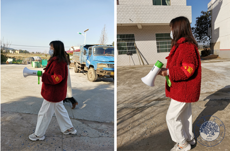 “戴口罩、勤洗手,开窗通风不串门。”最简单的话语亦是最有效的提醒,为了增强基层人民对疫情防控的认识,中文与教育系19汉本2班张雨婷不惧病毒,勇敢地选择宣传动员工作。手拿大喇叭,衣别红袖章,各个街道有她认真巡查的身影。