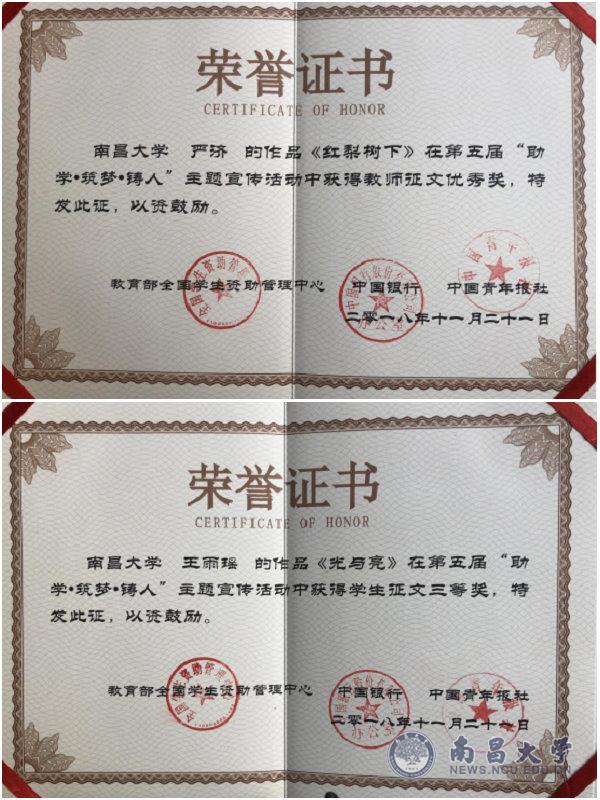 本网讯(学生记者丁晨茜)近日,全国第五届“助学·筑梦·铸人”主题宣传活动总结大会在中国农业大学举行,我校第一临床医学院教师严济、学生王雨瑶分别创作的《红梨树下》《光与亮》从近11万篇参赛作品中脱颖而出,获教师征文优秀奖和学生征文三等奖。我校获优秀组织奖。