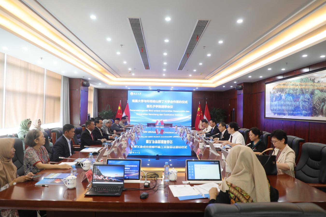 代表团访问期间,学校举行了南昌大学与哈山努丁大学合作洽谈签约仪式暨孔子学院理事会议。会上,陈晔光校长和Jamaluddin Jompa校长分别代表南昌大学和哈山努丁大学签署了学术、科研与发展合作谅解备忘录,推动两校在师生交流、科研合作、孔子学院建设等方面开展更加深入的合作。