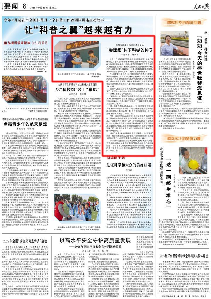 编者按:9月23日,《人民日报》要闻版以《让“科普之翼”越来越有力》为题刊发报道,其中介绍我校星火科普志愿服务队走遍江西11个设区市,坚持普及科学知识、营造热爱科学氛围的举措成效。详情如下: