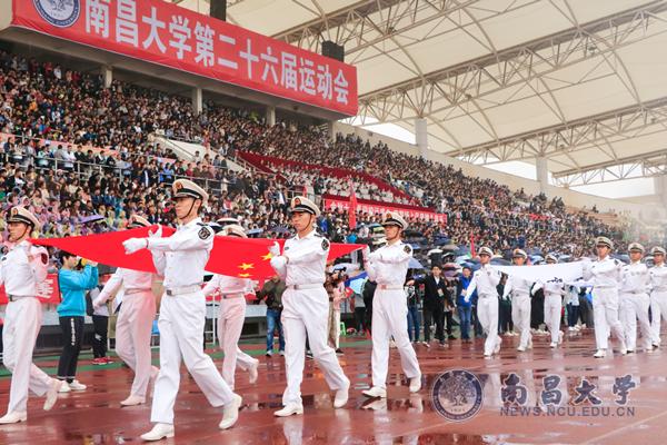 本网讯(记者杨舒苑、学生记者潘子欣)在庄严雄伟的国歌声中,全场师生全体起立,高唱国歌注视国旗升起,国旗、校旗和会旗在运动场上空迎风招展。10月25日上午,南昌大学第二十六届运动会在体育场拉开序幕。