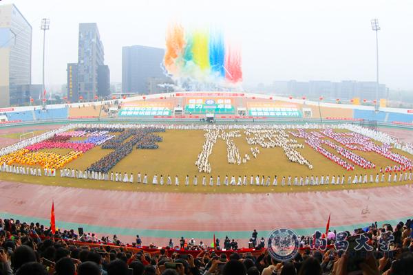 开幕式大型团体操表演分为“传承”、“健康”、“美丽”三个篇章,3200余名来自医学部的学子们气宇轩昂,以青春为笔,用豪情泼墨,润色着这金秋的画卷。合着激情飞扬的节拍,他们在操场上热情奔跑、变幻舞姿、组合图案,“德高”、“医精”、“医者仁心”等字接连映入眼帘,诠释着医学生们肩上的责任与担当。创意独特、精彩绝伦的表演点燃了观众们的热情,现场掌声欢呼声经久不息。