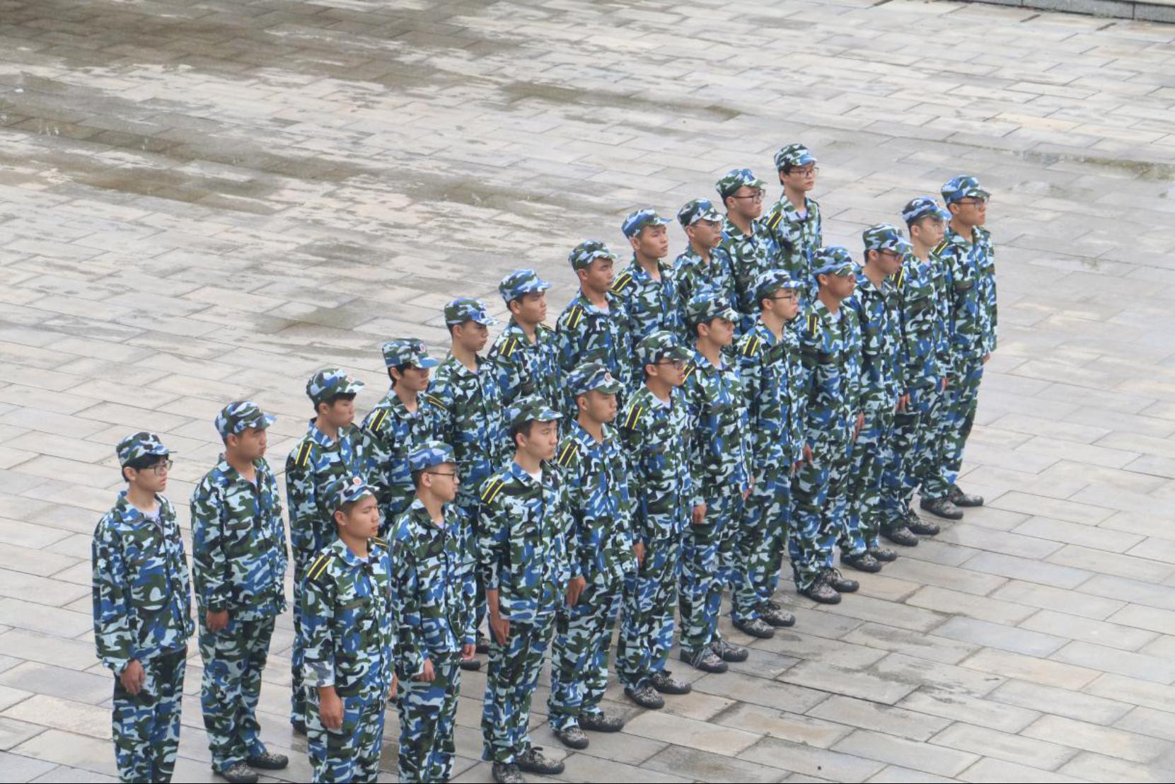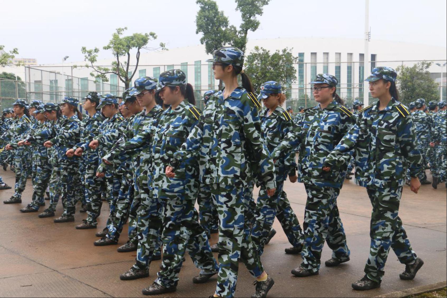 一二三四,步调一致。新生们在教官指挥下认真训练齐步走,“一令一动,抱腹准备”,步伐与口令协调呼应。