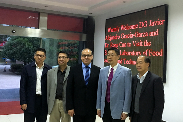 11月11日,在我校食品科学与技术国家重点实验室主任谢明勇教授陪同下,J.A.Gracia-Garza一行参观了中加食品科学与技术联合实验室和我校食品科学与技术国家重点实验室。听取了双方在食品领域多年的合作情况报告。Gracia-Garza对中加联合实验室的实验条件、设施配备、运行情况等给予了充分的肯定。双方就未来在食品科技领域的进一步务实合作展开了讨论。