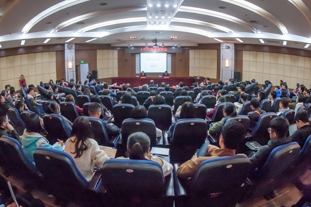 胡永新在总结讲话时指出,学习宣传贯彻党的十九大精神是学校当前和今后工作的首要政治任务。全校上下要坚持在“学懂”“弄通”“做实”上下功夫,认真读原著、学原文、悟原理,扎实开展分层次、全覆盖的党员干部和师生骨干培训;将学习十九大精神创造性融入教育教学、科学研究体系,发挥学校学科、人才、科研优势,充分发挥思想政治理论课主渠道作用;坚持学以致用、用以促学,把党的十九大精神落实到行动上、落实到工作中,为建设区域特色鲜明的高水平综合性大学目标,为实现十九大绘就的宏伟蓝图做出新的贡献。