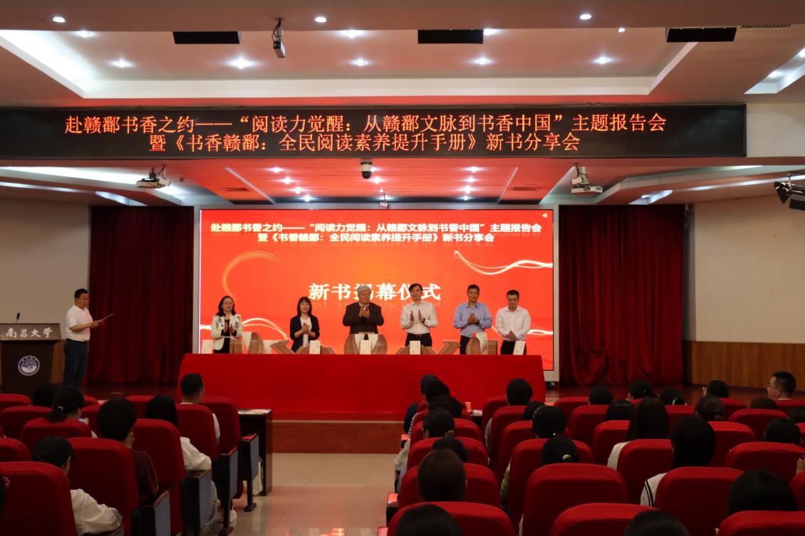 本网讯(图书馆) 4月19日,在第五届全民阅读大会即将召开之际,“阅读力觉醒:从赣鄱文脉到书香中国”主题报告会暨《书香赣鄱:全民阅读素养提升手册》新书分享会在南昌大学举行。中国出版协会全民阅读工作委员会主任聂震宁担任主讲嘉宾,江西出版传媒集团党委委员、董事吴涤,我校副校长平卫英出席。来自全省高校、出版界、媒体的工作人员及师生代表齐聚一堂,共赴这场赣鄱书香之约。