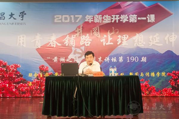 “今天和同学们分享的学习主题是,‘用青春铺路 让理想延伸——弘扬井冈山精神,做红色基因的传承者’。”讲台上,胡永新已然开启导师模式。讲台下,新闻与传播学院2017级全体新生正悉心聆听自己的大学第一课。