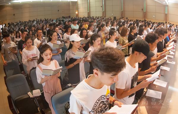 上午9时,文法楼报告厅,新闻与传播学院2017级各个新生班级正在举行“拉歌式”中华经典诵读活动,关于井冈山、南昌大学等主题的经典文学作品诵读声一浪高过一浪。