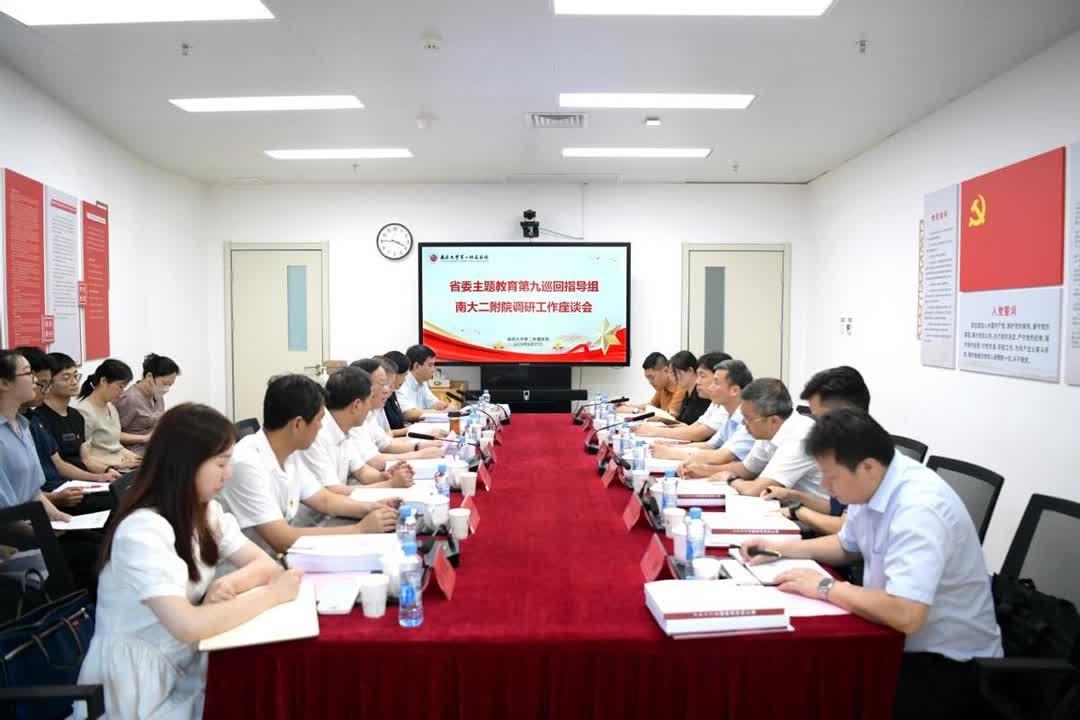 本网讯(第二附属医院)6月27日下午,省委主题教育第九巡回指导组组长王晖一行来到我校第二附属医院开展调研指导。校党委常委、党委组织部部长徐光兵,南昌大学第二附属医院党委书记程学新,党委副书记、副院长(主持行政工作)祝新根出席调研座谈会。