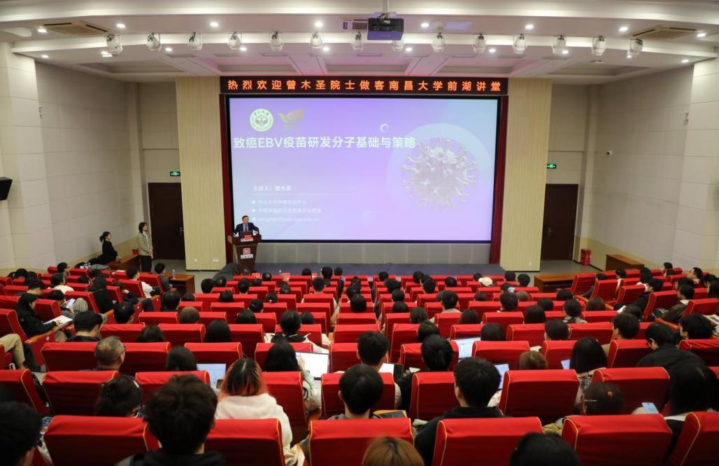 本网讯(江西医学院 叶建飞)4月3日,中国科学院院士、中山大学肿瘤防治中心副主任/副院长、南昌大学校友曾木圣应邀做客“前湖讲堂”第四十七期暨南昌大学庆祝办学105周年——江医校友系列学术论坛(第二讲),以《EB病毒疫苗分子基础与研发策略》为题作学术报告。副校长潘秉兴主持报告会。