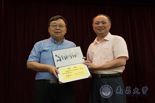 聘任仪式上,江风益介绍了金亚秋教授的科研经历并为金亚秋教授颁发聘书、佩戴校徽。金亚秋表示,将不遗余力地加强与南昌大学的交流与合作,共同推动南昌大学的发展与跨越。