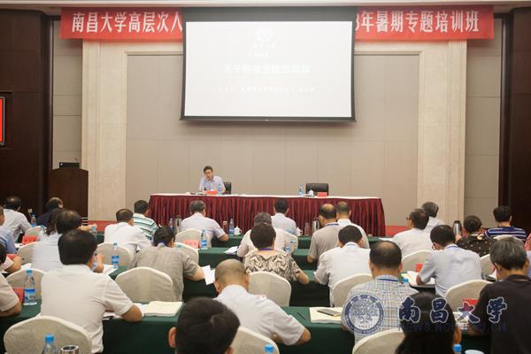 本网讯(记者许航)8月27日上午,教育部发展规划司处长王长树应邀来校,为南昌大学高层次人才、处级干部能力提升暑期专题培训班学员作部省合建专题辅导,校党委书记喻晓社主持报告会。