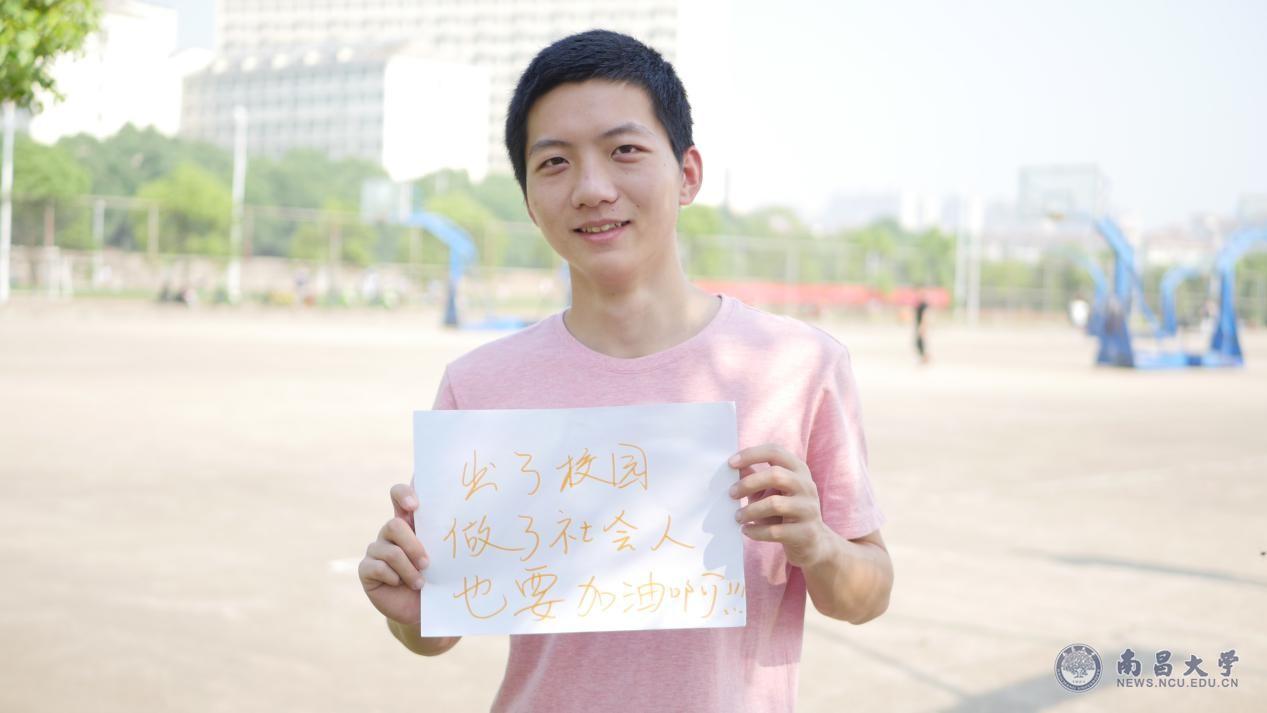 来自新闻与传播学院新闻学173班的朱佳泉对毕业生们说,希望他们出了校园,投身社会后,也要努力加油。