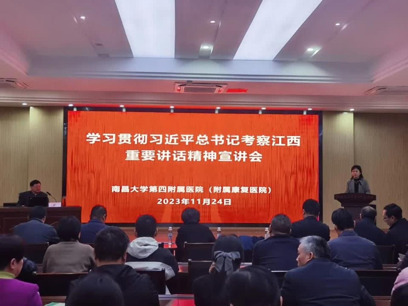 本网讯(第四附属医院)近日,校党委书记罗嗣海在第四附属医院(附属康复医院)召开学习贯彻习近平总书记考察江西重要讲话精神宣讲会,推动学习宣传贯彻习近平总书记考察江西重要讲话精神走深走实,促进学校“新征程、再出发”使命愿景大讨论取得实效。