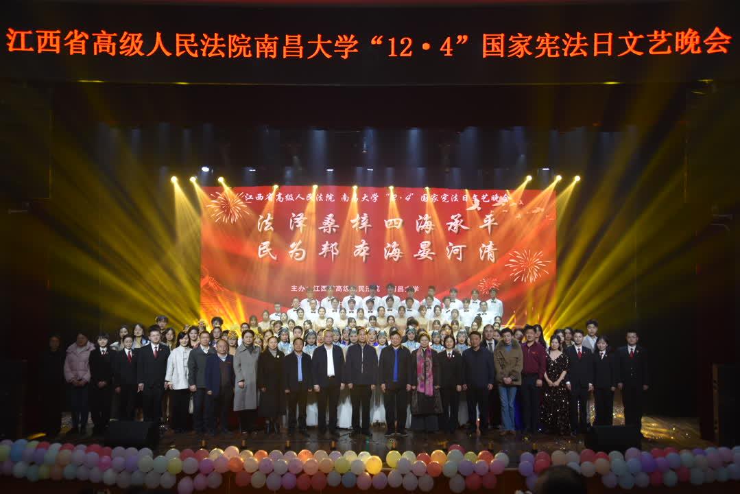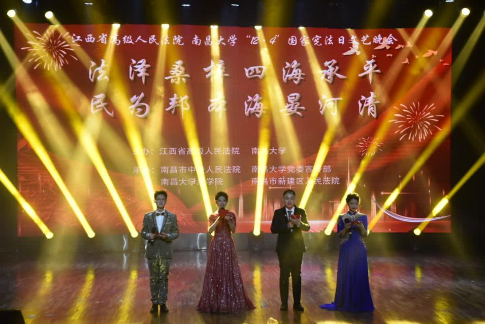 本网讯(法学院)12月3日晚,南昌大学在前湖校区音乐厅举办“12·4”国家宪法日文艺晚会。本场晚会由江西省高级人民法院、南昌大学联合主办,南昌市中级人民法院、南昌大学党委宣传部、南昌大学法学院、南昌市新建区人民法院承办。江西省高级人民法院党组副书记、副院长居国屏,南昌市中级人民法院党组书记、院长刘星,南昌大学党委书记罗嗣海,副校长陈始发,民建江西省委员会副主委、法学院院长杨峰,以及江西省高级人民法院,江西省司法厅,南昌市中级人民法院,新建区人民法院,南昌大学党委组织部、党委宣传部、团委、法学院主要领导出席晚会。