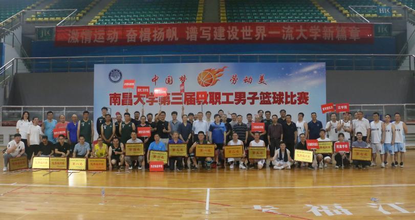 本网讯(工会曾苹 学生记者王一瑶)5月22日-6月7日,南昌大学第三届教职工男子篮球比赛在前湖校区室内体育馆举行。赛事历时17天,共48场比赛,来自全校19个分工会的250余名教职工参加比赛。决赛于6月7日晚圆满落下帷幕,副校长邓晓华、刘耀彬、吴丹为获奖单位颁奖。