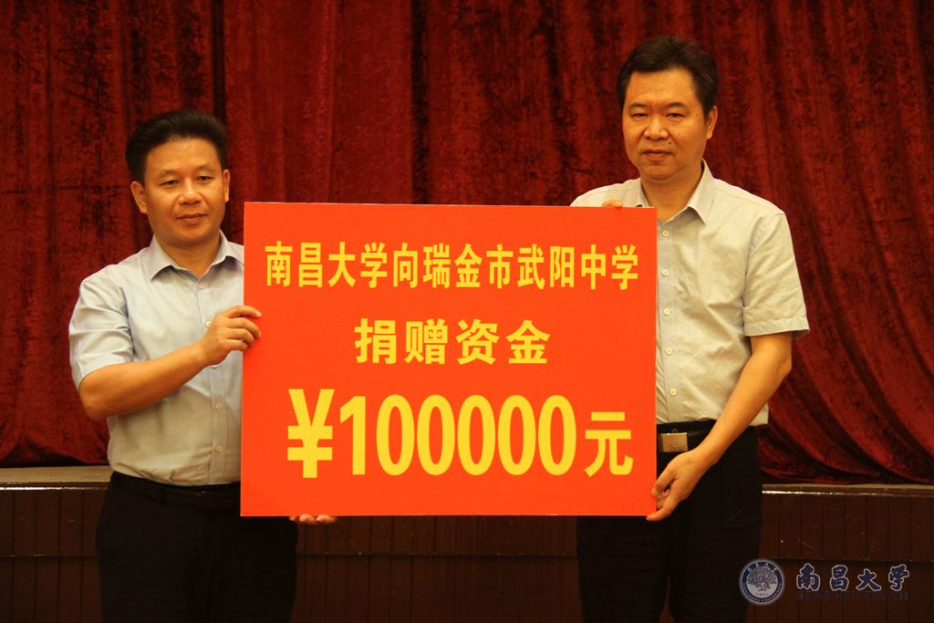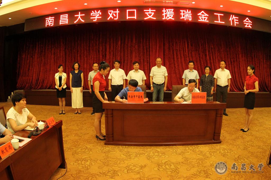 会上,南昌大学与瑞金共同设立“江西省旅游文化研究会红色文化与旅游融合发展创新研究基地”、“南昌大学旅游学院旅游专业实践教学基地”,学校向瑞金武阳中学捐赠资金10万元,用于武阳中学运动场的改造,旅游学院与瑞金市人民政府签订旅游人才培养战略合作框架协议,第二附属医院与瑞金市妇幼保健院、瑞金市中医院签订帮扶协议。