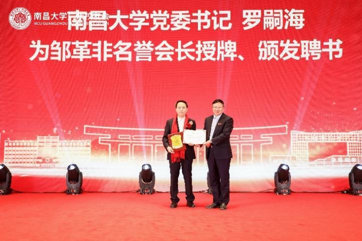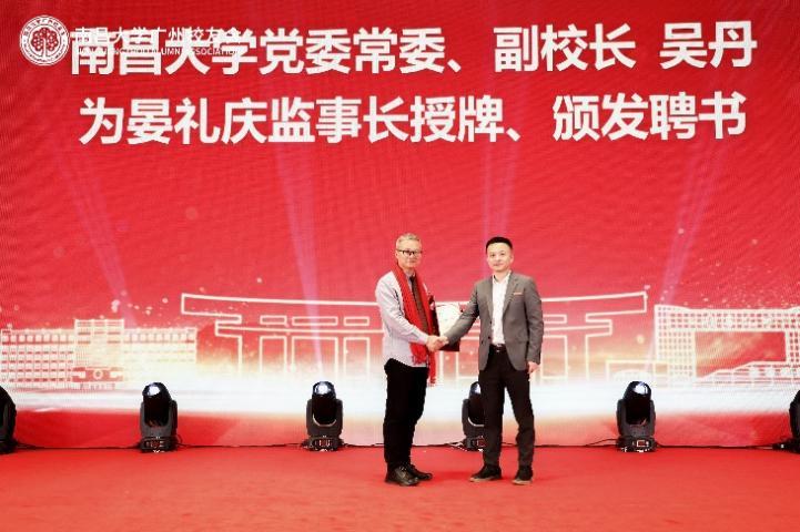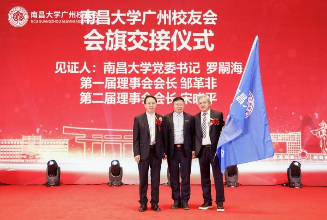 新旧两任会长在罗嗣海的见证下,进行了广州校友会会旗交接。罗嗣海、吴丹为新当选的会长、名誉会长、监事长、常务副会长、副会长授牌颁证。宋晓平为秘书长、执行秘书长、副秘书长授牌颁证。晏礼庆为新当选的监事授牌颁证。