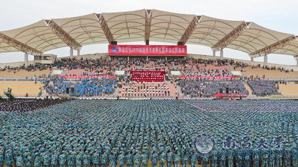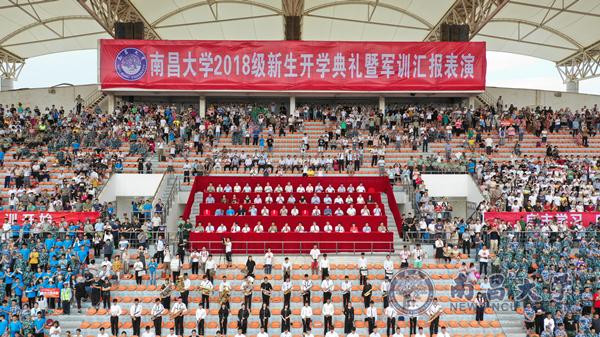 本网讯(记者杨舒苑)9月16日上午,南昌大学2018级新生开学典礼暨军训汇演在前湖校区体育场举行,全体2018级新生迎着朝阳与晨风完成他们的入学礼。