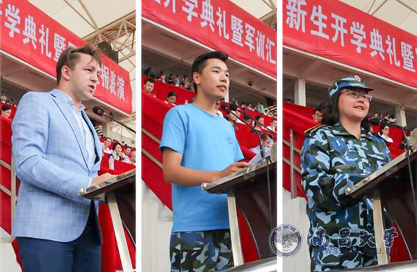 本科新生代表、公共管理学院张婉婷同学,留学生新生代表、来自俄罗斯的叶凡同学分别发言。“学长小教员”代表、第一临床医学院王康同学寄语2018级的学弟学妹们“大学是用来珍惜的,不是用来惋惜的,大学是用来奋斗的,不是用来虚度的。”