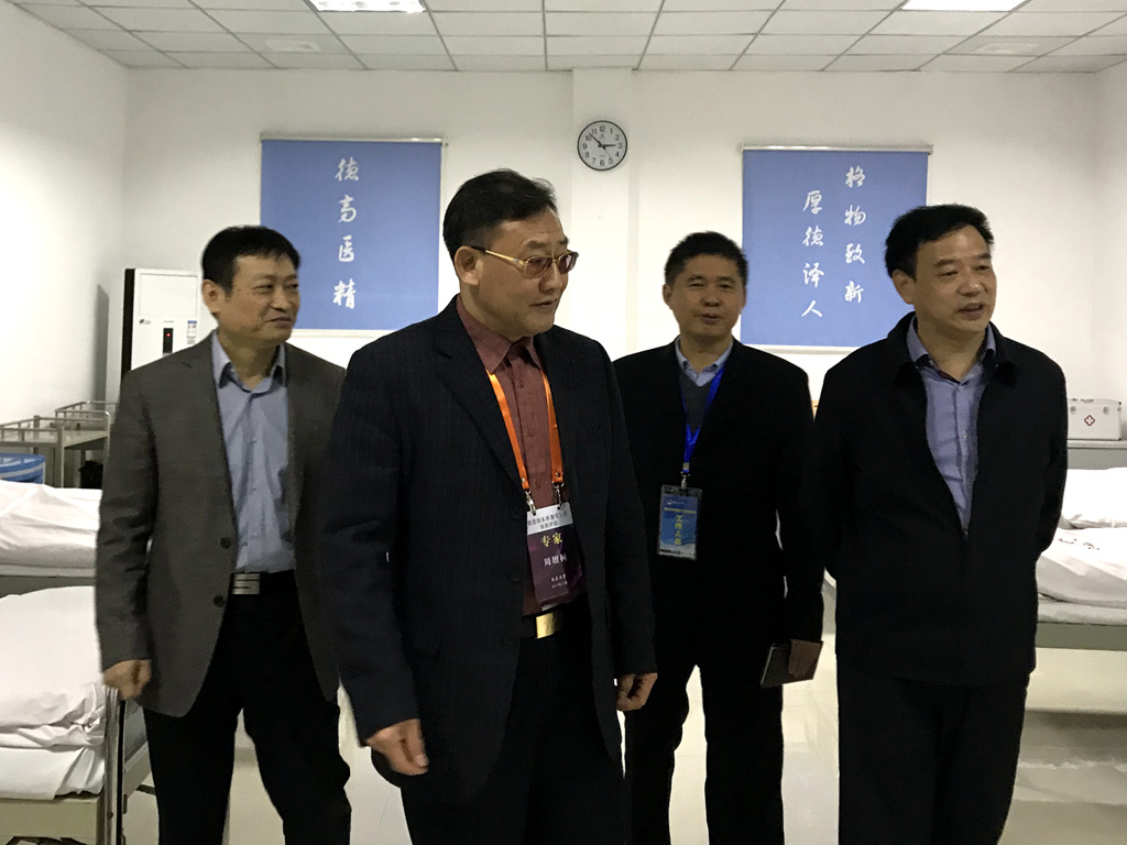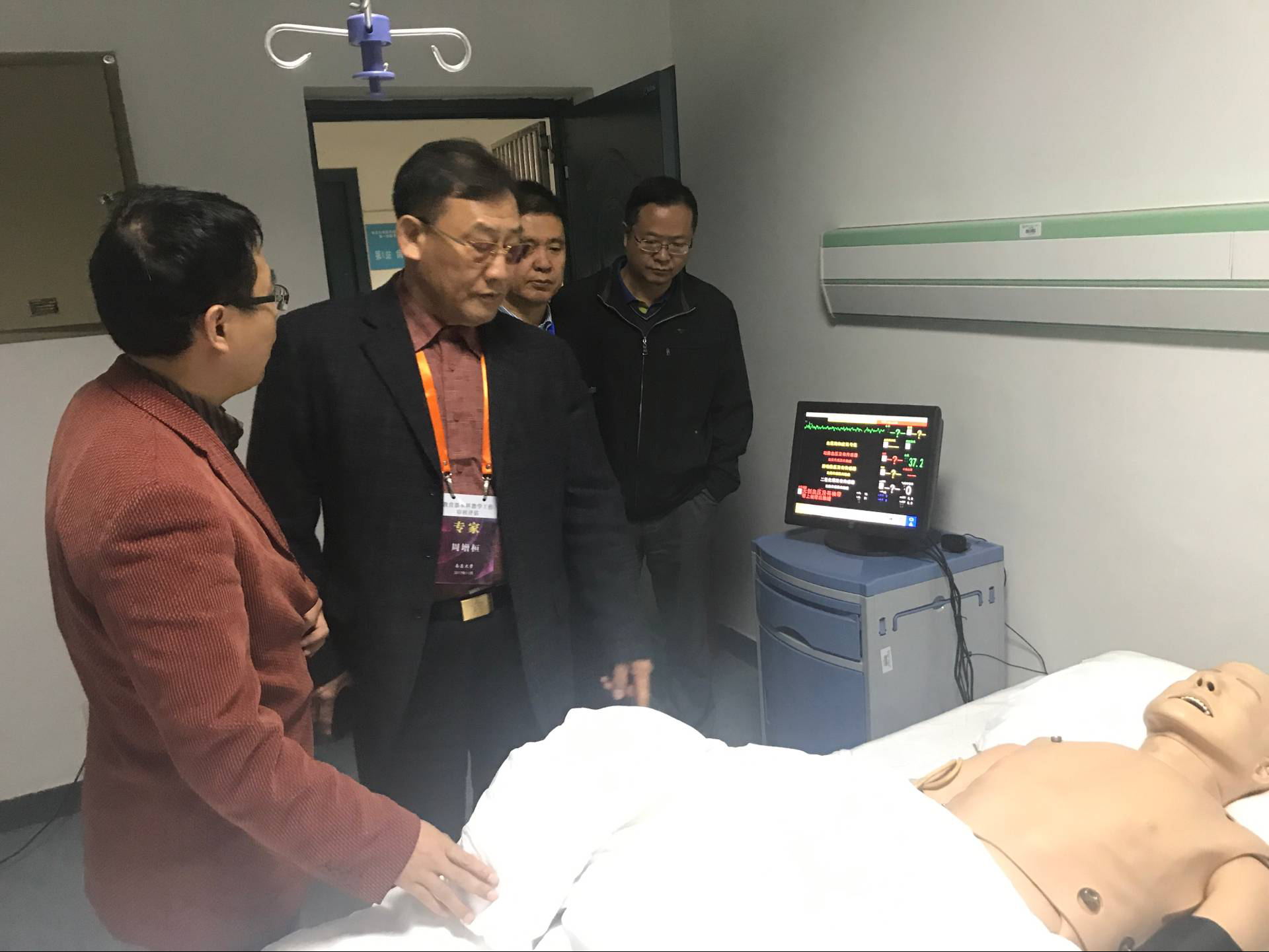 15时45分,走访临床医学实验中心,了解实验教学条件、实验教学课程设置等情况,并访谈相关负责人。图为考察模拟重症监护室。