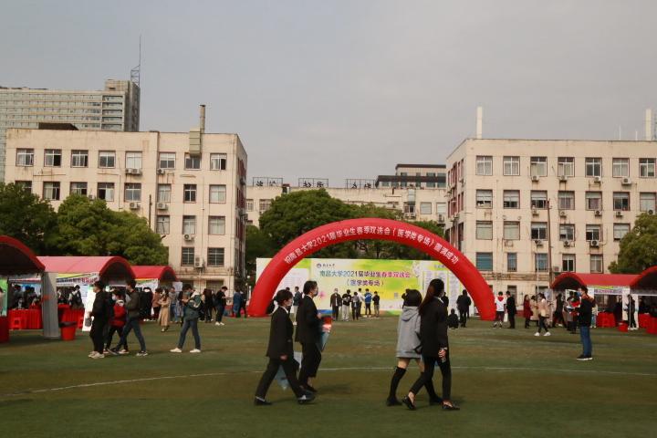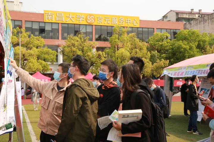 学校职能部门通过调研,了解到医学类毕业生希望把双选会办在东湖校区,方便他们参会。立刻与相关部门通力合作,克服了东湖校区场地有限等不利因素,于4月10日圆满举办2021届毕业生医学类专场春季双选会,双选会邀请了130余家优质用人单位参会,其中二级及以上医院70余家,三级甲等医院30余家,国有企业、机关事业单位、医疗教育、科研机构等20余家,将“等毕业生上门”变为“送就业岗上门”。许多学院院长、书记带毕业生到摊位前对接就业单位,还有的在招聘会还未开始时,便一家家帮学生们遴选单位。