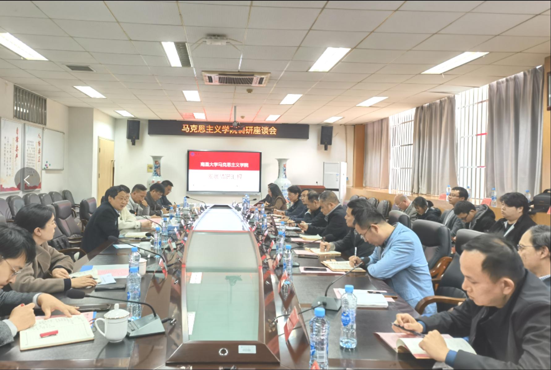 陈始发认真听取学院负责人关于教学科研、学科建设、党建思政等方面工作介绍,充分肯定了学院近年来取得的成绩。他指出,马克思主义学院是学习研究宣传马克思主义的主阵地,思想政治理论课是马克思主义学院坚持用习近平新时代中国特色社会主义思想铸魂育人的主渠道,思政课教师是传播马克思主义理论的主力军,要把建好建强马克思主义学院作为一项政治任务抓实抓好。马克思主义学院要以学校“新征程、再出发”使命愿景大讨论活动为契机,深入思考在学校双一流建设中建好建强马克思主义学院的路径、方法和举措,围绕“教学立院、科研强院、学科兴院、服务美院”目标任务,努力把大讨论实际成果转化为助推学校事业高质量发展的强大力量。