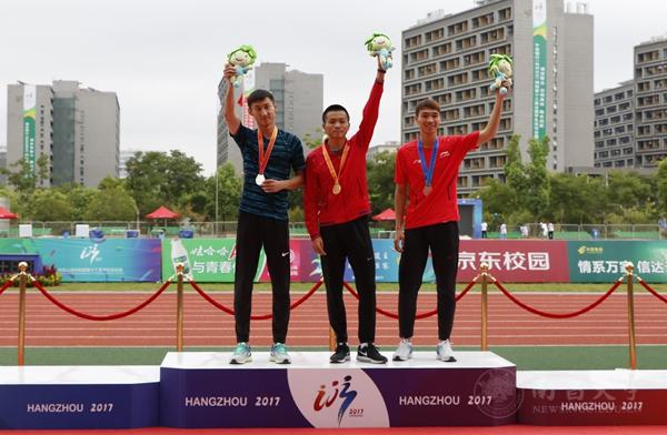 本网讯(学生记者张宇萱)9月11日,在浙江杭州举行的第十三届全国学生运动会男子田径比赛中,我校2015级运动训练专业吴宇昂以46秒91的优异成绩取得男子400米决赛冠军,这是我校参加该项赛事以来夺得的第一块金牌。